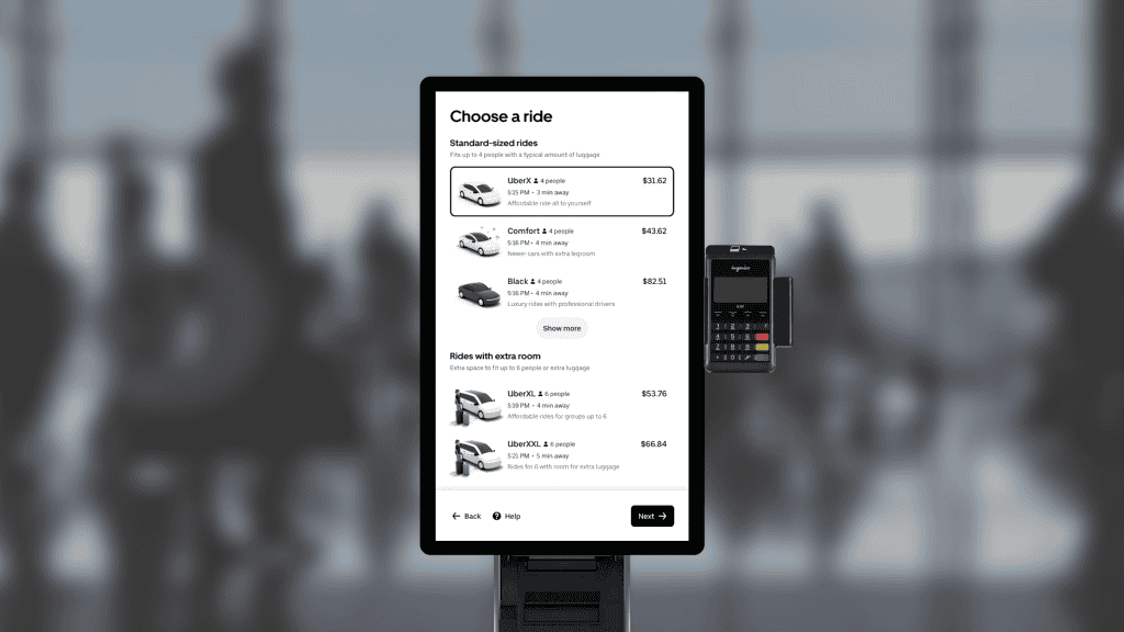 A Uber começou a instalar totens de autoatendimento que permitem aos viajantes reservar corridas mesmo sem acesso ao aplicativo.