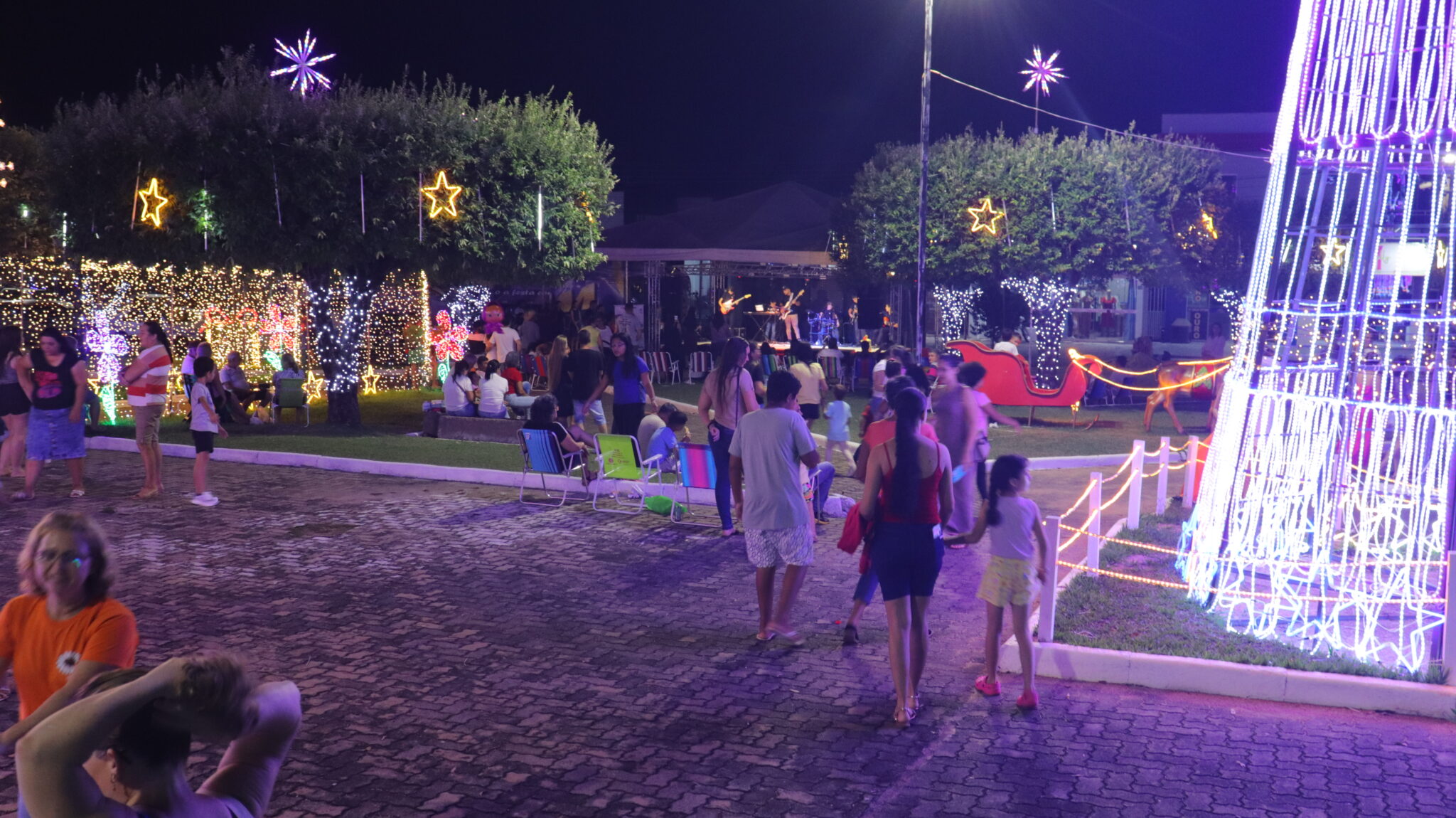 Um dos pontos altos da noite foi o Furacão da Alegria, ônibus temático de Natal disponibilizado gratuitamente pela Prefeitura Municipal. A atração garantiu a diversão dos pequenos e a tranquilidade das famílias, unindo o lazer da Feira com a magia natalina.