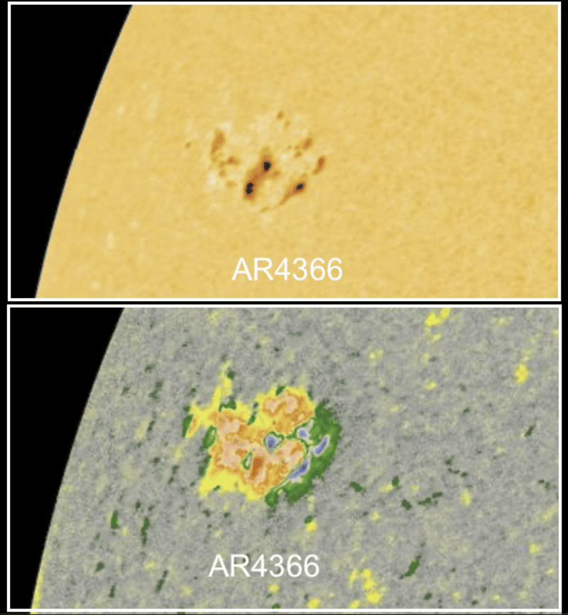 A maioria dos episódios ocorreu na região ativa AR4366, um grupo de manchas que surgiu recentemente no lado leste do disco solar e cresceu de forma acelerada, tornando-se quase 10 vezes maior que a Terra. Esse processo deixou a área extremamente instável, favorecendo a ocorrência de explosões intensas e sucessivas.