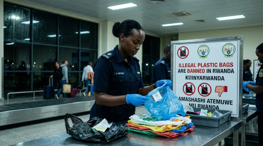 Quais as regras e penalidades para quem descumpre a proibição do plástico em Ruanda?