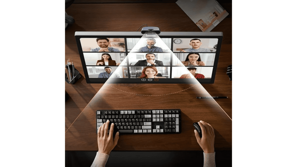 O modelo oferece resolução 2K, permitindo captura de imagem com maior nível de detalhe em comparação com webcams de resolução inferior. Esse tipo de resolução é utilizado para melhorar a qualidade visual em reuniões e transmissões.