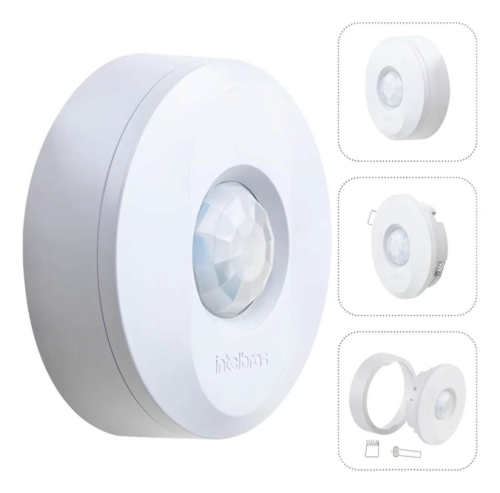 O sensor de presença Intelbras para teto é uma solução prática e eficiente para automação de iluminação. Ele detecta movimento no ambiente e aciona automaticamente as luzes, sendo ideal para corredores, garagens, áreas externas cobertas, escadas e entradas.