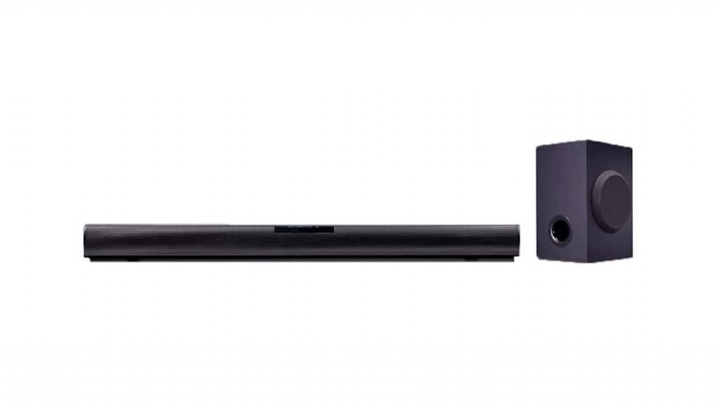 O conjunto tem 160W de potência e vem com uma caixa de graves que conecta à barra principal sem usar fios. O aparelho possui entradas óptica e auxiliar para conectar na TV ou em outros dispositivos de som.