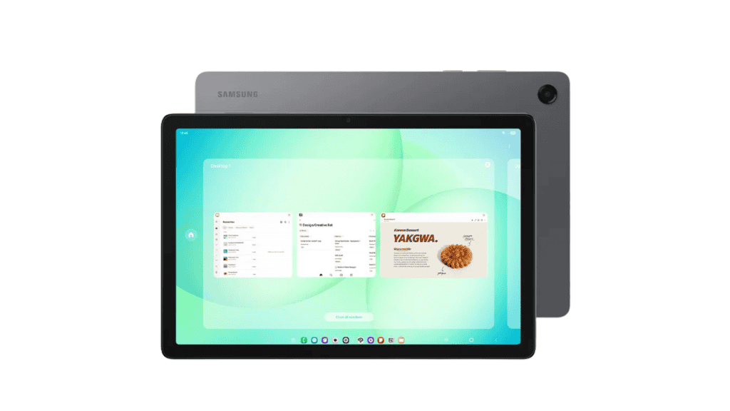 O Galaxy Tab A11+ 5G traz o processador MediaTek Dimensity 7300 e tem 6 GB de memória RAM. O aparelho conta com 128 GB de espaço para arquivos, mas possui uma entrada para cartão microSD que permite aumentar esse armazenamento para até 2 TB.