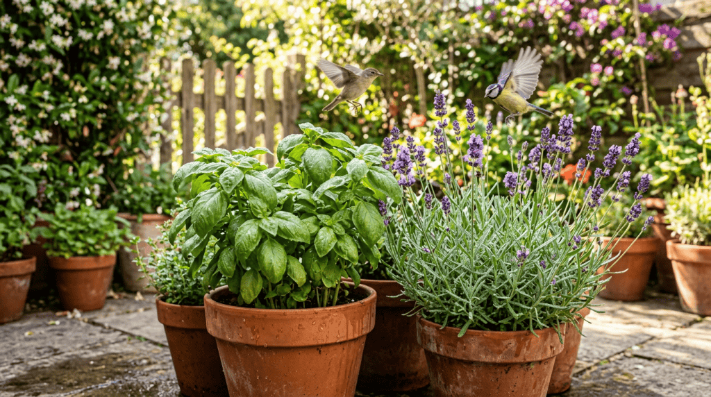 | Manjericão | Perfuma e resfria | Pássaros que comem insetos |